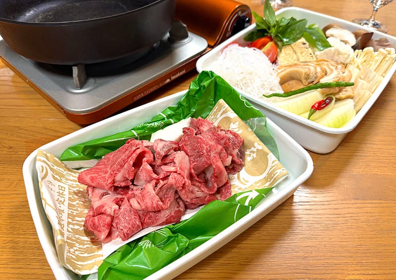 Sukiyaki is a feast for us at home, and also a well-balanced meal. For my husband’s birthday, I used beef from Matsuki, a specialty shop in Asakusa. Along with plenty of vegetables, I added traditional ingredients such as shirataki, noodles made from konnyaku yam, and fu, a light and spongy ingredient made from wheat gluten.
