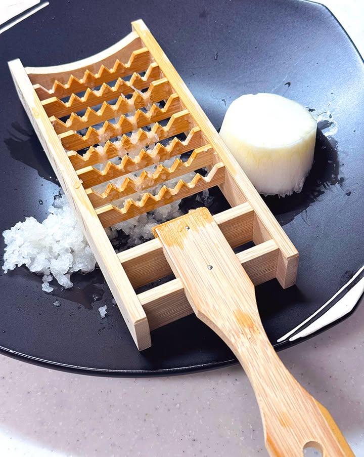 When you use an onioroshi to grate daikon, the texture comes out coarser than usual.