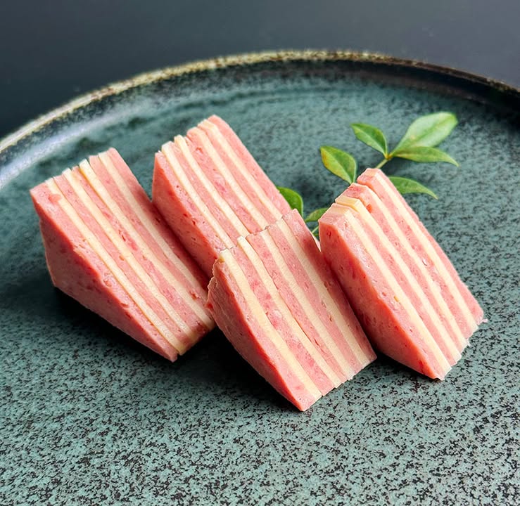 It’s a playful creation made with canned pork luncheon meat, simply layered with sliced cheese.