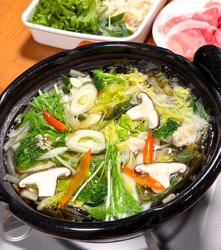 winter meals in Japan. You can add all kinds of ingredients- vegetables, meat, fish, and tofu- and enjoy them gently cooking together in the pot. Hot pot soups vary, from simple kelp dashi to richer with soy sauce- or miso- based broths.