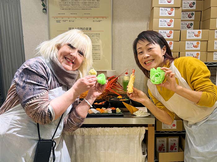 It was my first time making Japanese food samples with a friend.