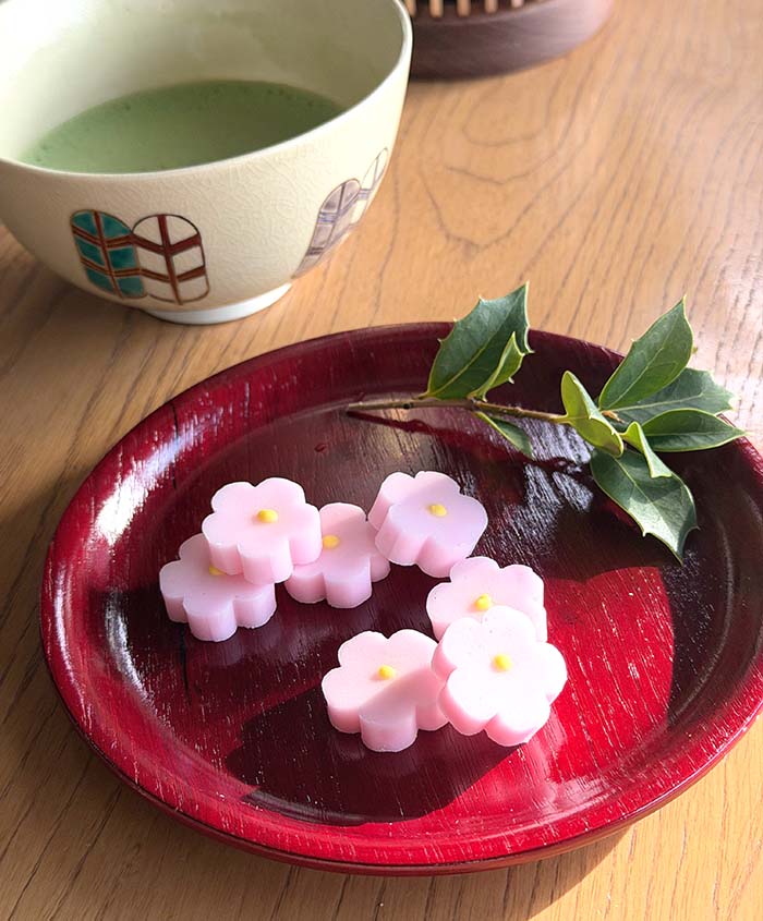 We enjoyed matcha together with the lovely flower-shaped Japanese sweets she brought.#matcha #teagathering #omeletyellow