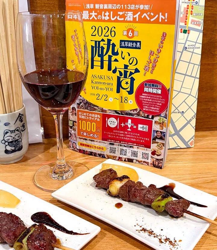 I enjoyed a bar-hopping event in Asakusa. It ran over about two weeks. For 1,000 yen, you could get a special set, one drink and one small dish, and collect a stamp from each bar you visited.It’s a great way to discover hidden gems.By the way, bar-hopping is called hashigozake in Japanese. Hashigo means ladder and zake means alcohol, so it’s like climbing a ladder step by step, moving from one spot to the next. Collecting stamps along the way makes it even more fun!