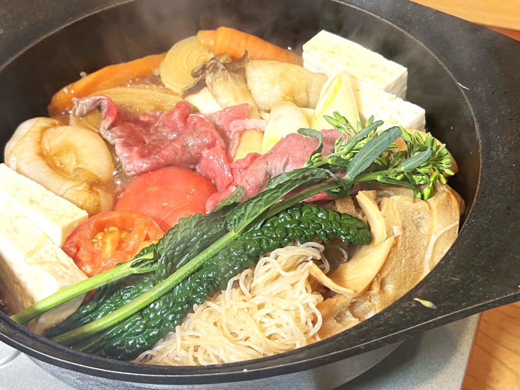 In this class, we use premium beef from Matsuki, a specialty shop in Asakusa, along with plenty of vegetables and traditional ingredients such as shirataki noodles and fu. Everything is gently simmered in a sweet and savoury warishita, creating a comforting and well- balanced meal.