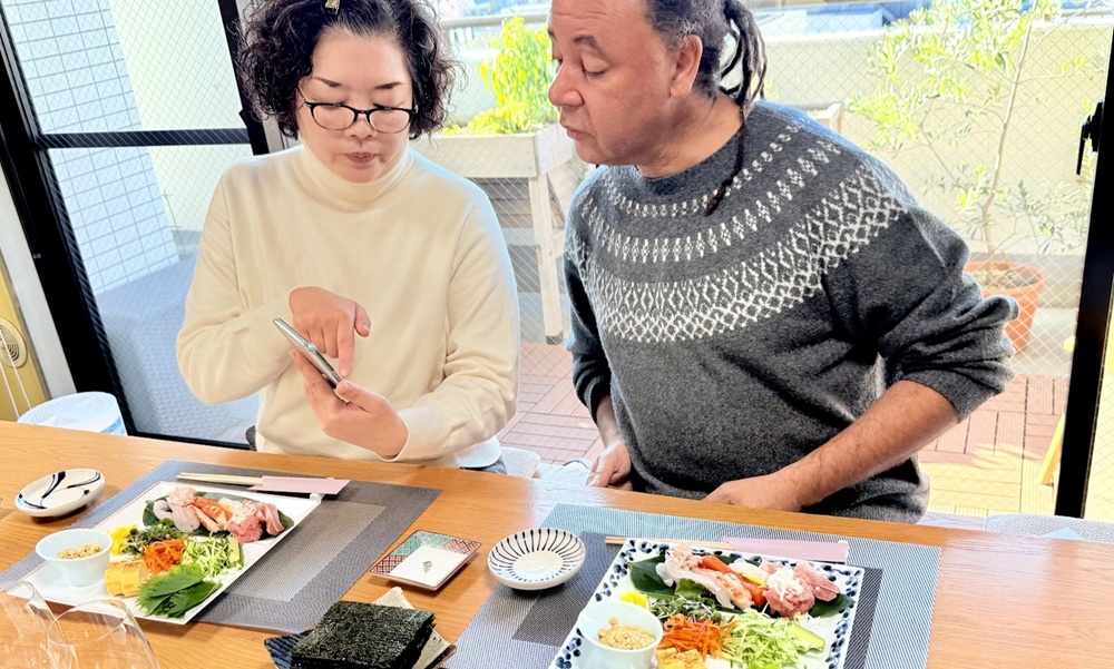 - 手巻き寿司作りと食事を一緒に楽しみます